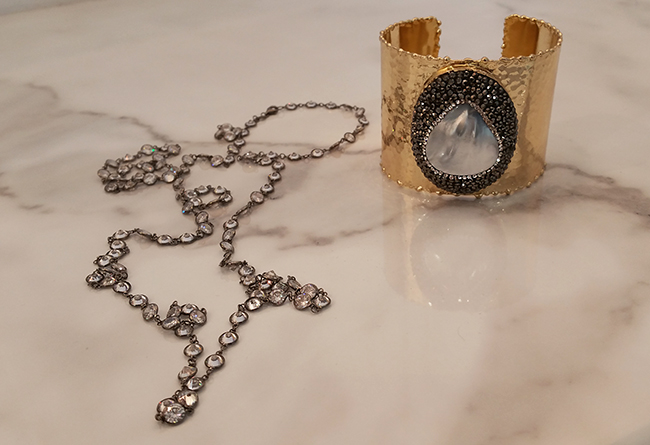 Gold Cuff Bracelet & Zircon Necklace